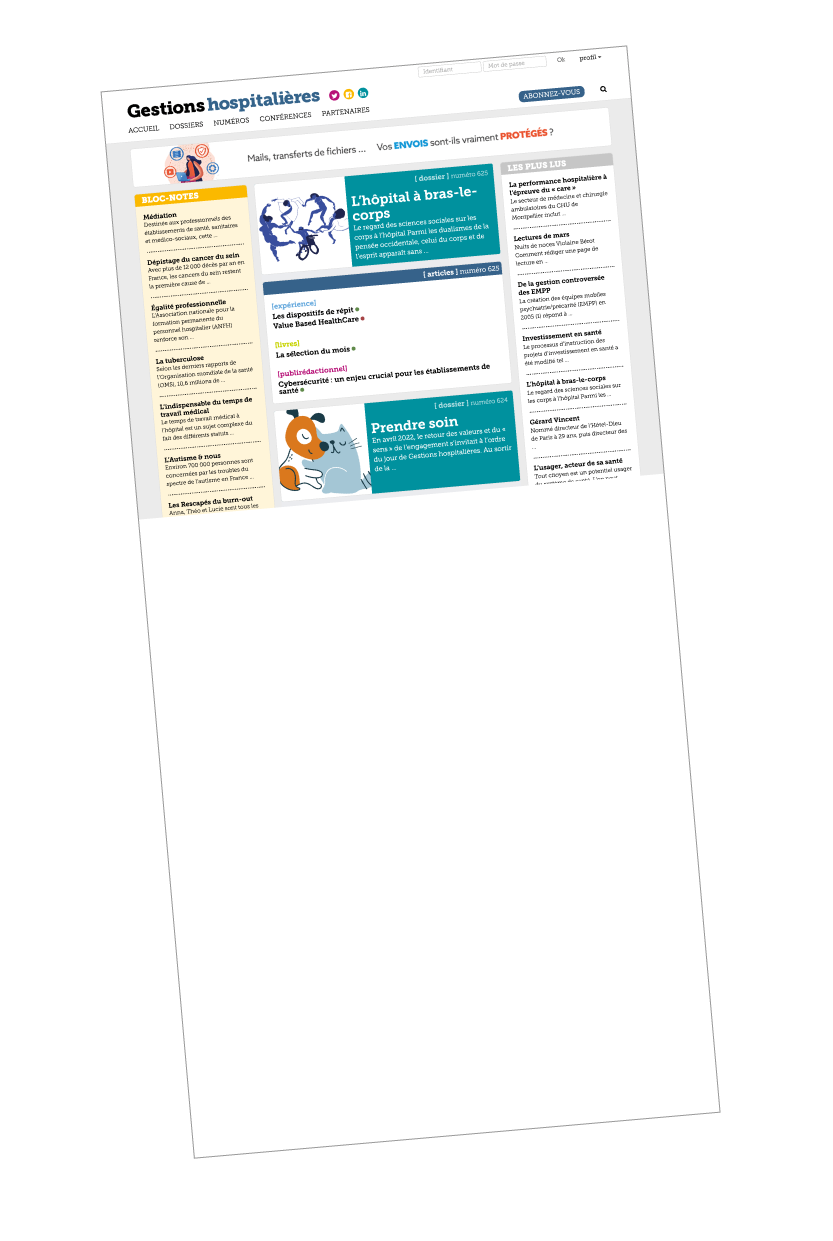 Site réalisé en 2016 et qui a contribué à donner une place à Gestions hospitalières sur les réseaux numériques. Il a été repensé en 2023, en même temps que la refonte du magazine, afin d’être plus moderne et dans l’air du temps.